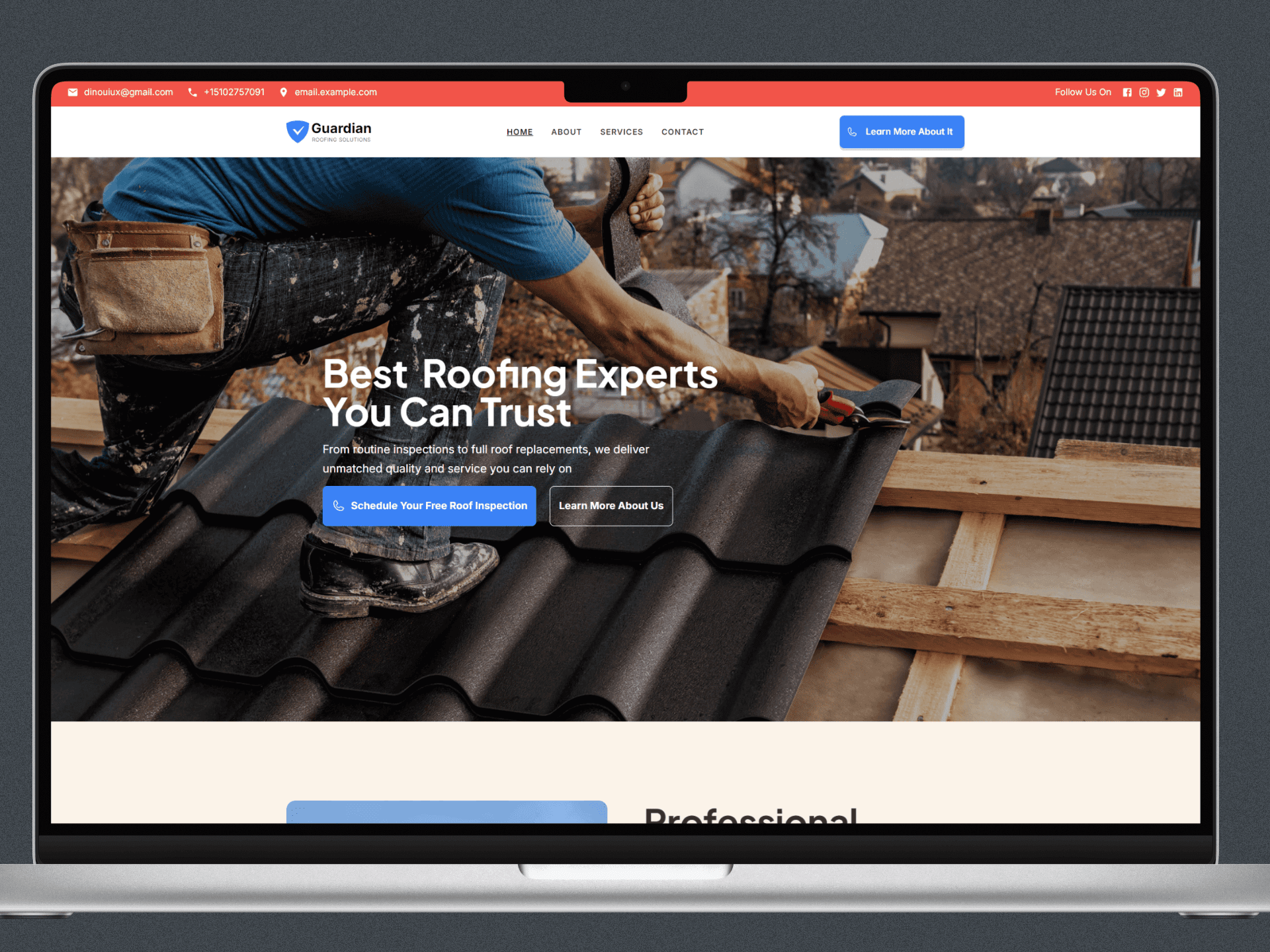 "Working with Victor was seamless! They understood our vision and turned it into a website that reflects our professionalism and values. The design is clean, the content is engaging, and our inquiries have noticeably increased. We couldn’t be happier with the results!" – Guardian Roofing Solutions